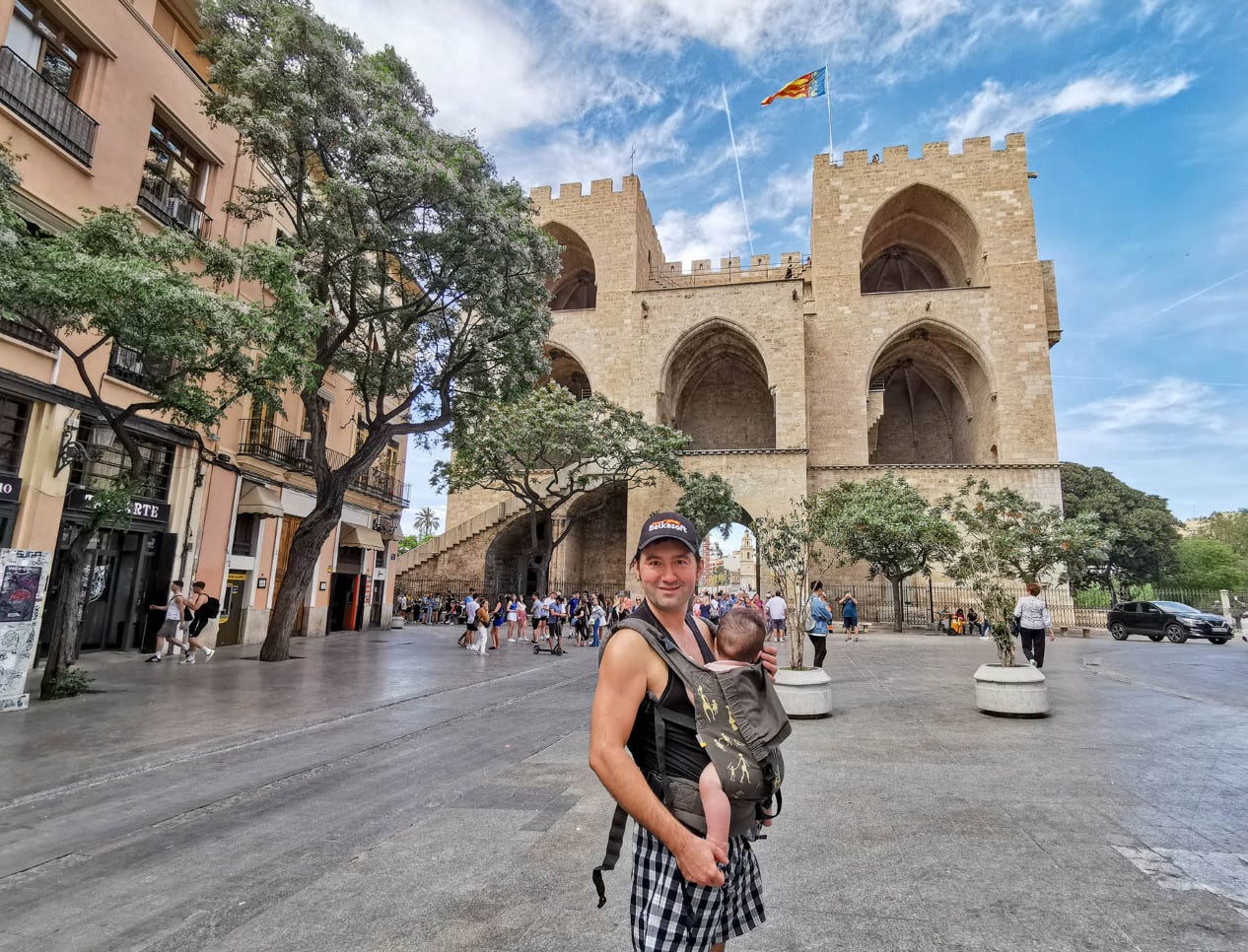 Денёк давали солнечный, мы даже намазались от солнца все втроём. Побывать в одновременно старинном и современном городе после Кипра — большое удовольствие само по себе. Хотя, конечно, с коляской так много, как раньше, не насмотришь — поэтому часть прикольностей, в частности «город науки», остались на следующий раз.