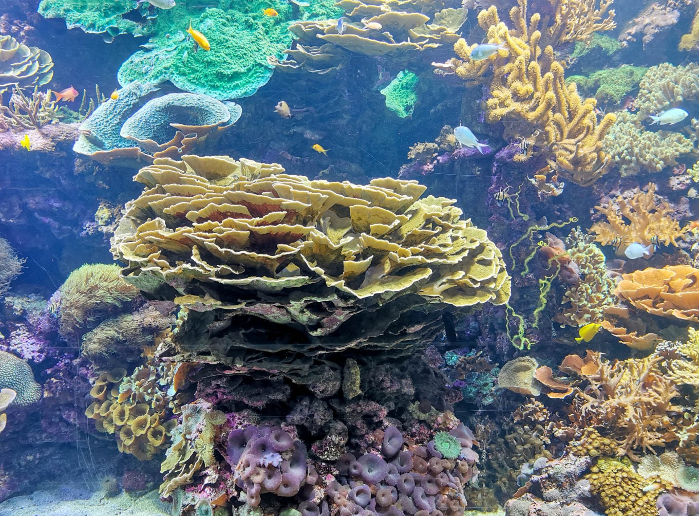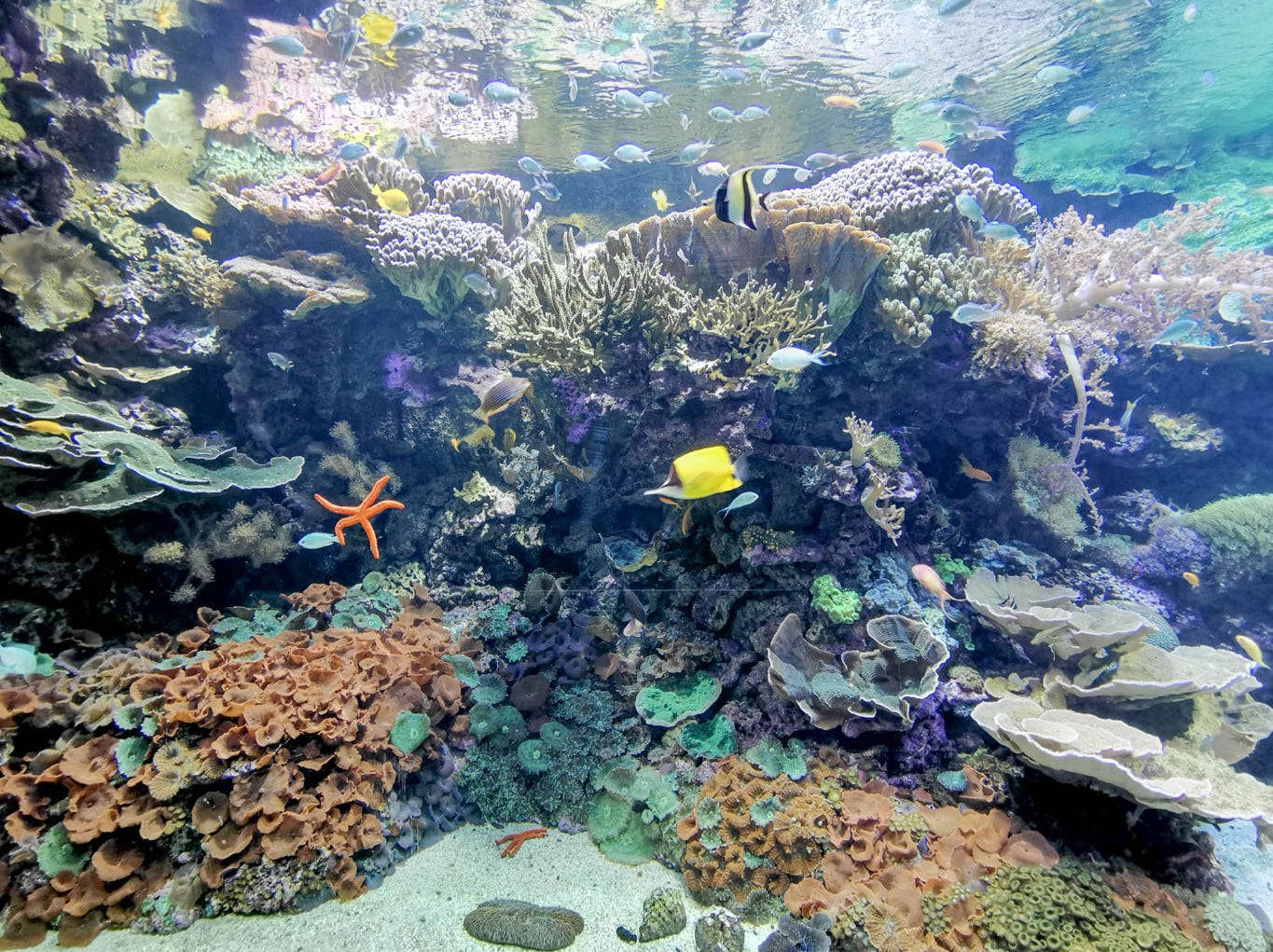 Несколько огромных U-образных бассейнов с миллиардом разных рыб и кораллов — выглядят сногсшибательно