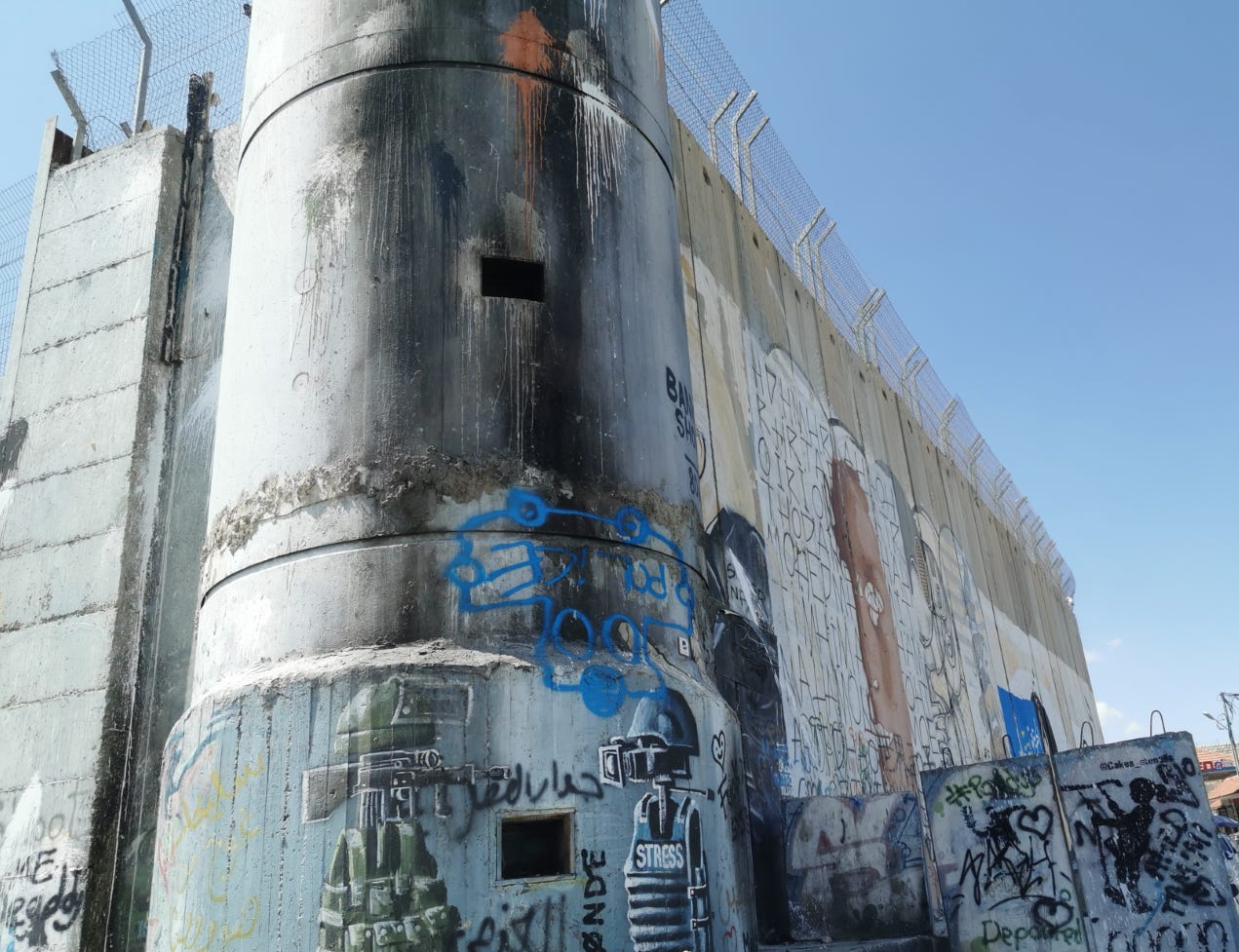 В этот раз меня больше поразила стена между Палестиной и Иерусалимом, обожжённая изнутри Вифлеема, — местные забрасывают её бутылками с зажигательной смесью при любых недовольствах.