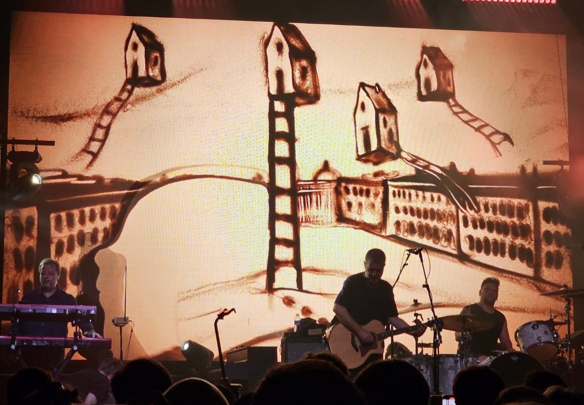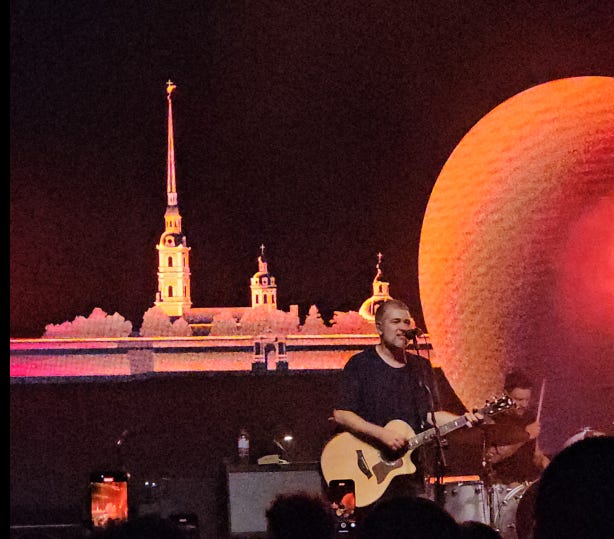 Питера хватало и в текстах песен, и в видеоряде за спинами музыкантов (за который им отдельный респект). Так, одна из песен сопровождалась крутейшим и очень трогательным видео с картинами из песка.