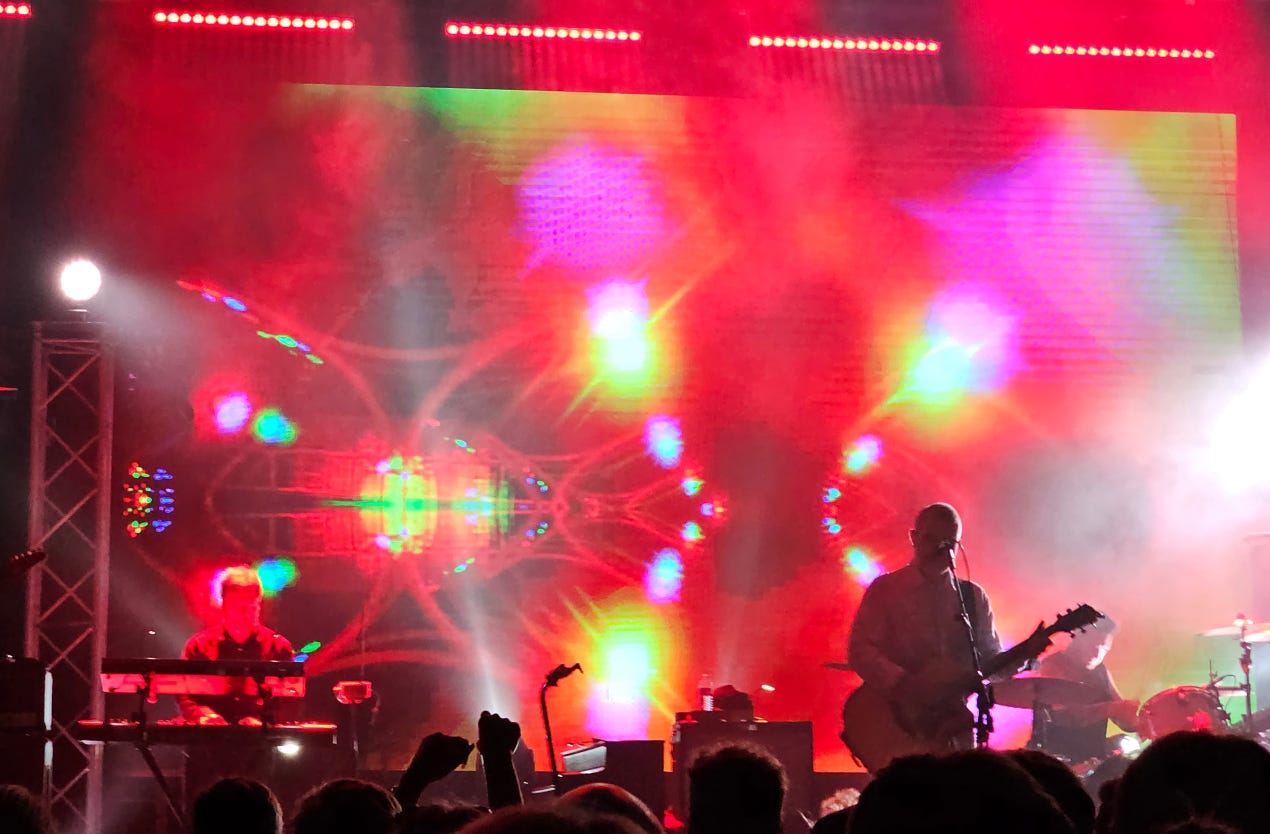 На Сплине я был последний (да и, кажется, первый) раз лет 10, если не 15 назад. С тех пор они обросли новыми песнями — признаться, я не знал чуть не половину исполненного вчера. Из новых, пожалуй, знал только про Гарри Поттера, дико депрессивную даже для Сплина песню. «За что нам всё это — скажи, Гарри Поттер». Прям аж плакать захотелось. Зацепила «Песня на одном аккорде» — правда, на сей раз не словами, а крутейшей тяжёлой аранжировкой. Там вокруг этой песни вообще была одна сплошная «Металлика», если послушать риффы соло-гитариста и характер его дисторшна. А казалось бы — Сплин.